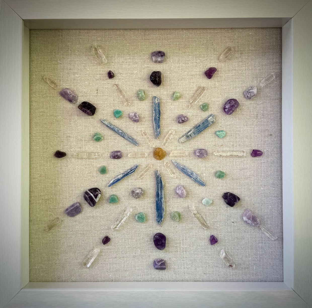 Starborn is a radiant crystal grid crafted to awaken the memory of your celestial origins and reconnect you with higher streams of consciousness. Each stone within the design resonates with a frequency of remembrance — a gentle call from the stars reminding you of who you’ve always been. This piece serves as both artwork and energetic architecture, harmonizing subtle light codes that support clarity, intuition, and divine connection.